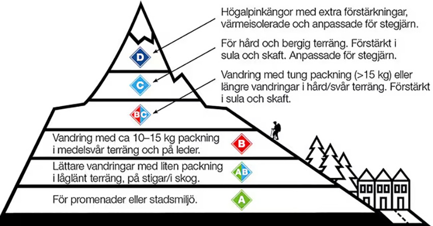 Med kategorier från A till D får du en snabbvisning om skons användningsområde.