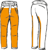 Täcker framsidan av benen (180°) samt 5 cm på vardera sidan av höger och vänster ben. Denna design är vanligast bland professionella användare.