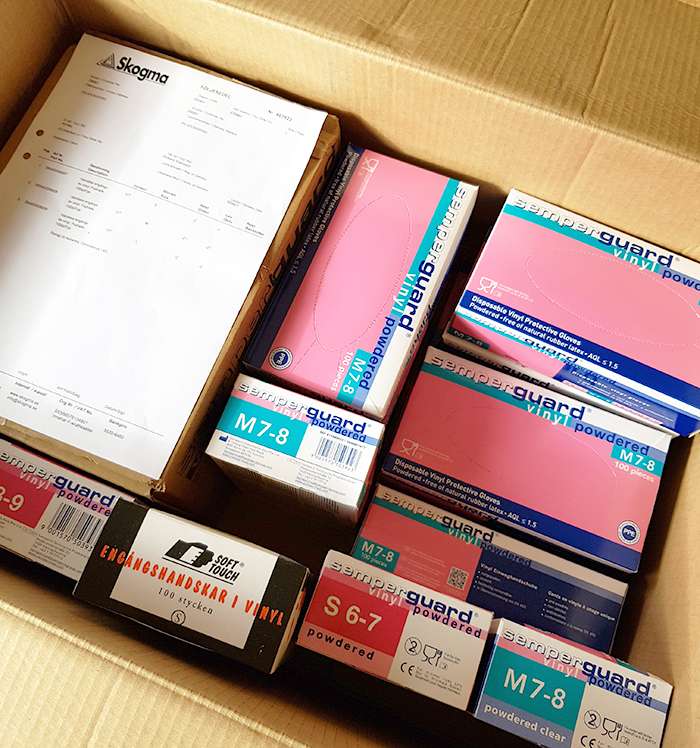 Vi har tömt vårt lager på engångshandskar och skänker dessa till Åshamra Särskilda Boende i Hammerdal.