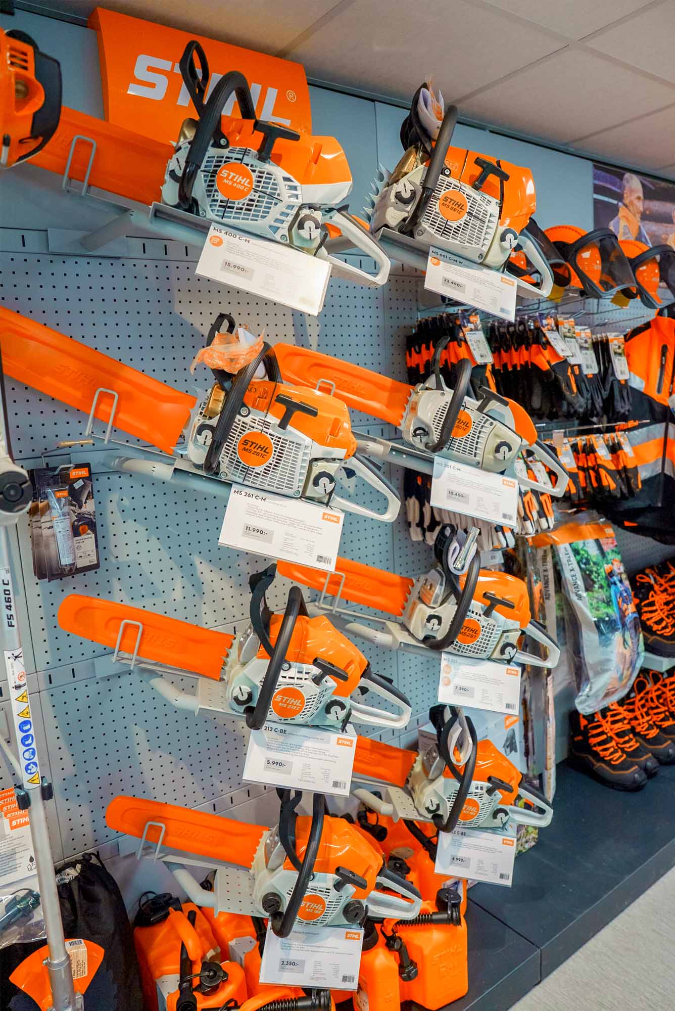 I Vansbro-butiken hittar du ett noggrant utvalt sortiment från välkända varumärken som Stihl, Meindl, CF Moto, Bahco, Aclima och många fler. Dessutom finns ett stort sortiment av Skogmas egna varumärken Timbermen, Nordforest, Trisaw och Nordforest Hunting. Sortimentet omfattar allt från sågverk, motorsågar och skyddsutrustning till fritidsprodukter, kläder, skor och trädgårdsredskap – produkter som håller vad de lovar i svenska förhållanden.